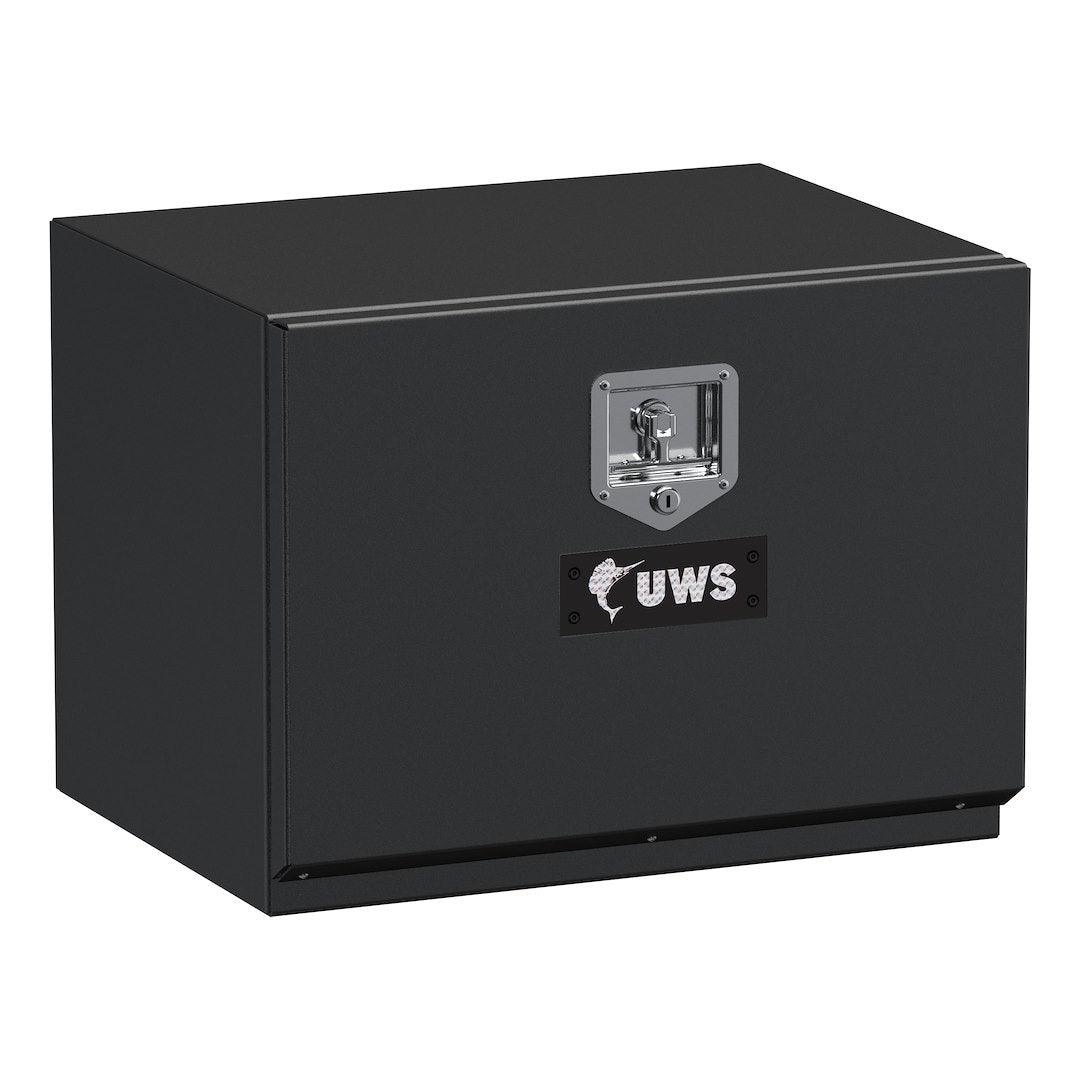 Upgrade your work vehicle with the UWS steel underbody tool box, designed to provide secure storage for your tools and equipment. Whether mounted above or below your flatbed, dump truck or trailer body, this tool box offers convenience and durability. Crafted from extra-thick, 14-gauge steel, it can withstand heavy loads while maintaining its integrity. The matte black powder coat finish not only adds a sleek look but also protects against corrosion and scratches, ensuring longevity even in tough working environments. With a 90-Degree opening door and a lockable T-handle for one-hand access, loading and unloading your tools has never been easier or more secure. Say goodbye to struggling with your tools – our steel underbody tool box provides easy access and reliable security. The door opens a full 90 degrees, allowing for hassle-free loading and unloading of equipment, saving you time and effort on the job. The lockable T-handle ensures that your tools stay safe and secure while you're on the go, giving you peace of mind knowing your valuable equipment is protected. Designed with convenience in mind, this tool box is a must-have for any professional who relies on their tools day in and day out.