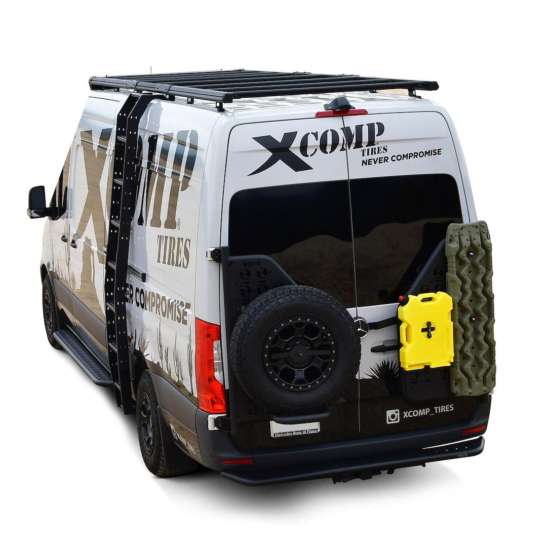 The all-new Westin Mesa Side Ladder is designed to enhance the functionality and accessibility of your vehicle's roof, making it a must-have addition to any off-road or overlanding setup. The 2-piece 11-gauge aluminum sheet metal construction of the Westin Side Ladder offers exceptional strength and durability, while remaining lightweight. The Westin Side Ladder's 14-1/2 Inch x 2 -1/2 Inch x 1 Inch wide steps provide ample space for comfortable and secure footing during ascent or descent. Safety is a top priority, and the dimple stamped top plate of the Westin Side Ladder offers superior grip in any weather condition. Whether you're facing rain, snow, or muddy terrain, this ladder ensures your safety and confidence as you access your rooftop cargo or roof rack. With the pre-drilled side mounting holes, the Westin Mesa Side Ladder offers endless possibilities for customization and cargo management. The Mesa Side Ladder is built to last and features an electrostatic base coat for superior corrosion resistance, in combination with a durable textured black powder coat finish.