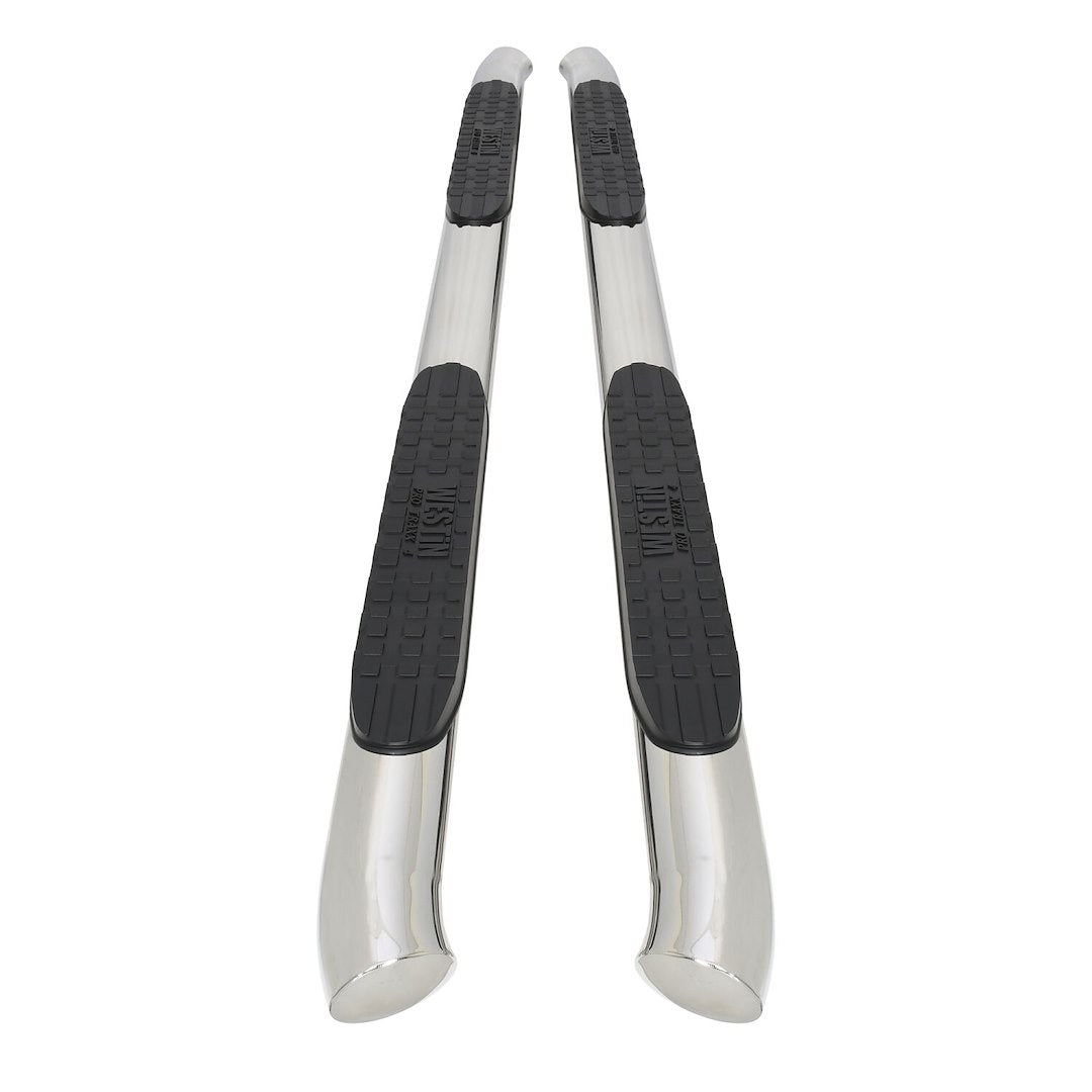 The all new PRO TRAXX® 4 Inch Oval Tube Step Bar features a bold series unique saddle mounted step pad. The step pad features deep paved waterways that help keep step area dry. Step tubes feature fully coated seamless domed ends with 30 Degree OE style bends. Applications are no-drill installation and are available in polished stainless steel and black powdercoated e-coated mild steel.