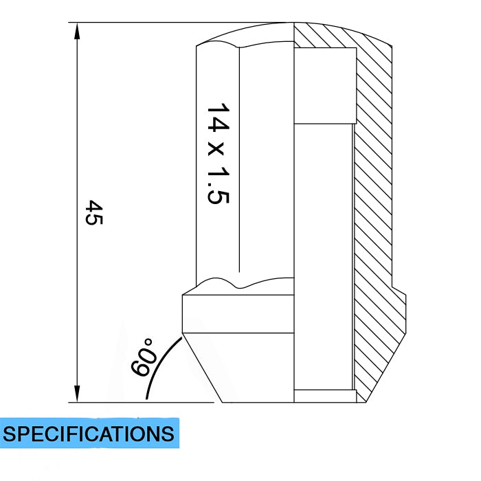 Coyote Wheel Accessories 53K548LBLK 60 Degree Conical 14x1.5 Lug Nut