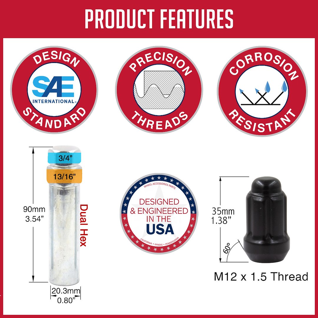 - Identification Thread Size Clearly Marked On Every Lug Nut