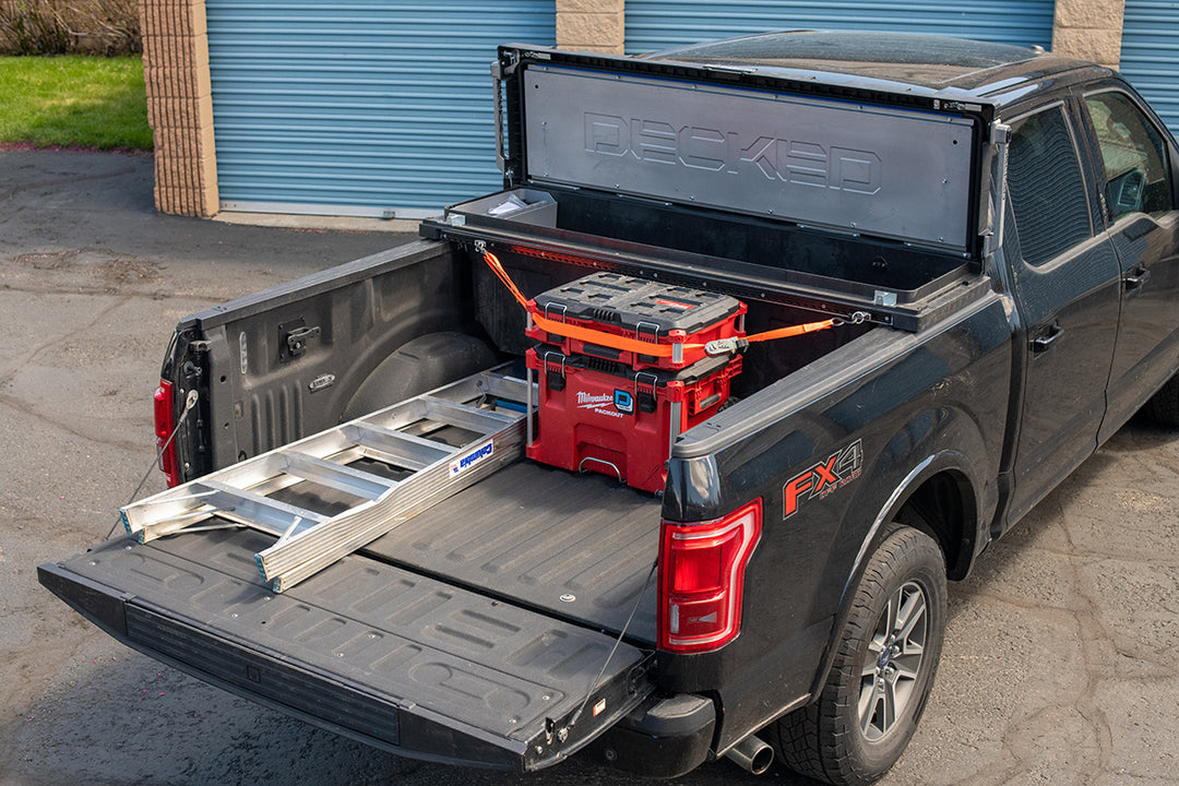 Core Trax 1000 tie-down tracks are custom manufactured to a mount onto the tailgate-facing aluminum extrusion on your DECKED Tool Box. 500 Pound pull-out rating. The attachment loops can be placed at 1 Inch increments along the trax for maximum customization.