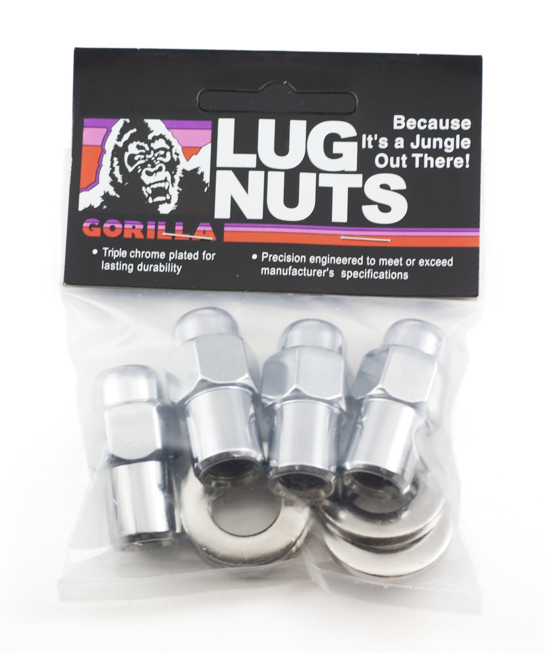 Gorilla lug nuts is designed and manufactured with the utmost attention to quality and finish. These are the best lug nuts on the market and no short cuts or inferior materials are used in their production. Gorilla provides a full line of lug nuts covering virtually every application. Gorilla also offers hard-to-find specialty lugs and washers for aftermarket wheel applications. Whatever you need in lug nuts, Gorilla's got it! Eye catching, informative packaging generate increased sales. Gorilla's technology has always met the standards of the advancements in automotive engineering