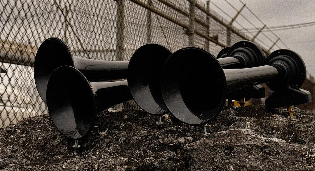 A train horn kit that can do it all and look good doing it, our Conductor’s Special 244K Nightmare Edition Train Horn Kit has been the go-to train horn kit for years. With enough volume to wake the dead and enough power to handle most pneumatic jobs you can throw at it, our Conductor’s Special 244K is one of our most rounded kits and a solid addition to any vehicle. Our Conductor’s Special 244K Nightmare Edition Train Horn Kit features our legendary Shocker XL Train Horns. Hand-tuned to the exact specifications of the US Train Horn Chord and packing just as much power as an authentic train horn, our Shocker XL Train Horns are the closest you can get to the real deal without having to spend thousands on a retired locomotive train horn. Constructed from an ultra-durable fiberglass-reinforced ABS composite with stainless-steel diaphragm and backed by a lifetime warranty against manufacturer defects, you get a train horn that is not only insanely loud but ridiculously durable as well. Of course, for horns of this caliber, you need an onboard air system that will keep up. Our Conductor’s Special 244K Nightmare Edition Train Horn Kit is one of our most well-rounded kits, with enough air to blast our Shocker XL Train Horns for up to 6 seconds, as well as handle most pneumatic applications such as air tools or tire inflation. Our Nightmare edition is powered by Viair’s 444C Stealth Black Air Compressor, recharging our 2-Gallon 6-Port tank in roughly a minute. With hardware and instructions included, you get everything you need to get back out on the road and honking.
