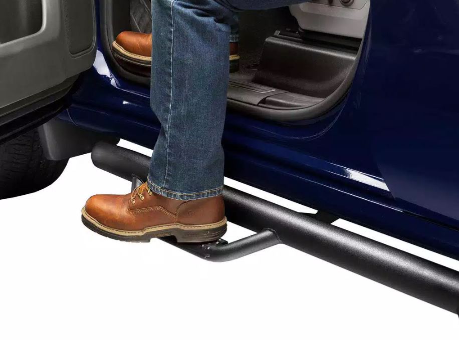 N-FAB's innovative and patented hoop step design is taken a step further with the Bed Access Nerf Step. Designed with the customer in mind, this Nerf Step allows easy access to the forward vehicle bed to gain access to tool boxes, 5th wheel and gooseneck hitches, along with other items that tend to collect at the front of every truck bed. Constructed from 0.084 Inch wall steel tubing, this Nerf Step has added strength and durability that yields a 465 Pound weight rating, which is the highest in the industry. Bed Access Nerf Steps are offered in standard gloss black powder coat over a durable zinc base coat, providing maximum corrosion resistance. Also available in textured matte black finish, and custom color matched finishes. All Bed Access Nerf Steps are backed by N-FAB's Lifetime Craftsmanship Warranty and 5 Year Finish Warranty.