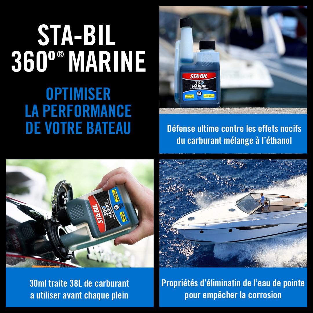 New STA-BIL® 360 Degree MARINE is the only fuel treatment to emit a revolutionary vapor that rises above the fuel line to protect your engine where others can’t. Use it with every fill up to help keep your engine running cleaner, leaner, smoother and stronger.
