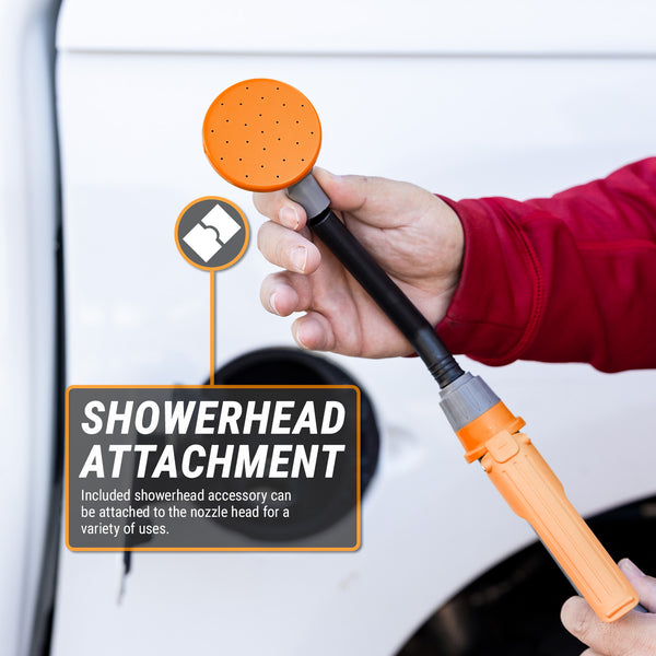 The TREP03 comes with two power adapters that give you a wide range of power option. The AC Adapter allows you to plug into any wall or extension outlet while the DC Adapter allows you to connect to various battery vehicles for power on the road. Flow Rate of up to 2.8 Gallons Per Minute. Nozzle connection is able to perform a 360 Degree rotation to prevent hose from tangling.