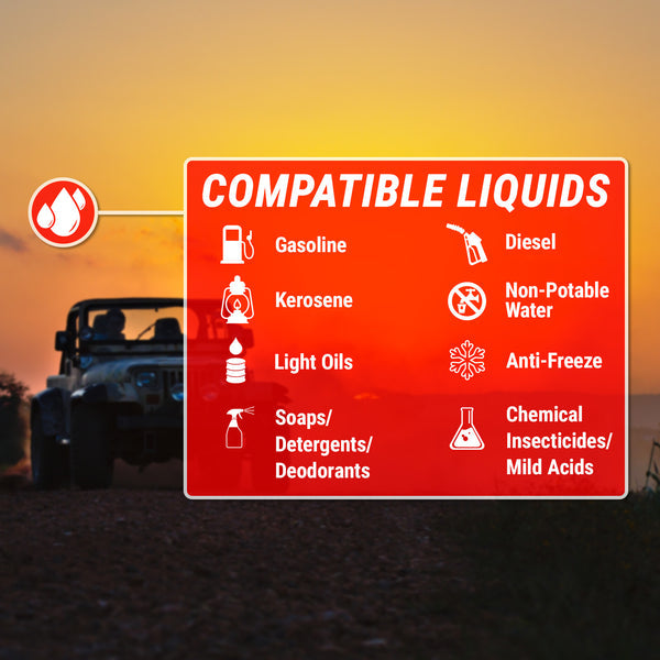 Our solid fuel transfer pump allows you to transfer 3.2 Gallons Per Minute. Transfers a variety of liquids. Including Gasoline, Kerosene, Diesel, Potable Water. No Electricity Required; Utilizes siphon action to transfer liquids by a simple grip and pump.